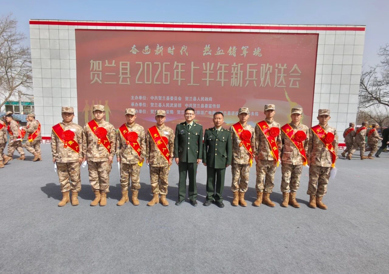 披戎装赴军旅,怀揣赤诚报家国。为热烈欢送优秀青年光荣入伍、奔赴军营,3月20日上午,贺兰县常信乡2026年上半年入伍新兵欢送活动在贺兰县欣兰广场隆重举行。新兵家属及各村代表齐聚现场,为8名即将踏上军旅征程的新兵送行。