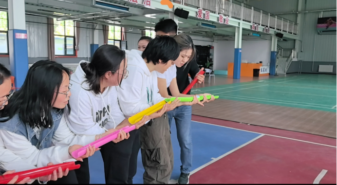活动共设置了热身破冰、健步走、跳绳、急速运球、投壶、蒙眼敲锣等多项趣味项目,既考验参与者的技巧与专注力,又充分兼顾了趣味性与安全性。活动现场妙趣横生,跳大绳的队员排成一列,摇绳者双臂发力,队员们紧盯绳影、默契起跳,脚步与绳声精准合拍,周围加油呐喊声此起彼伏。“这样的活动太有意义了!恰逢中秋、国庆双节将至,既让我们在工作之余放松了身心,还拉近了和同事之间的距离,也借着这热闹的氛围,祝大家中秋月圆人团圆、国庆安康事事顺!”青年干部陈彤笑着说。