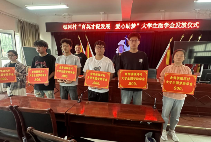 8月27日,在银河村村部会议室由银河村党支部带头组织举行大学生爱心助梦助学金发放仪式,为8名优秀学子送上助学金,助力他们开启大学梦想新征程。此次活动由银河村党支部主办,旨在帮助家庭经济困难且品学兼优的学生顺利完成学业,在全村营造重视教育、关爱人才的良好氛围。