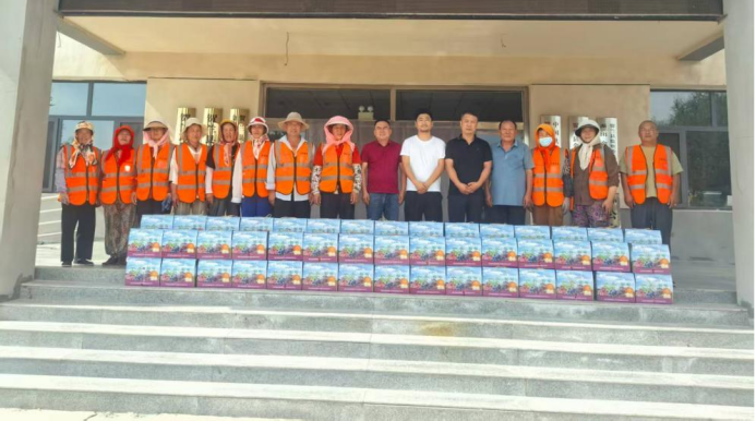 在慰问现场,环卫工人、企业代表、镇相关领导等一同合影留念,随后将封装整齐的葡萄礼盒发到环卫工人手中,向他们长期以来默默坚守岗位、维护镇容环境的辛勤付出表示感谢。“天这么热还能收到葡萄,心里特别甜!”拿到慰问品的环卫工人李海秀笑着说,这份关怀让大家感受到了来自社会的认可与温暖。