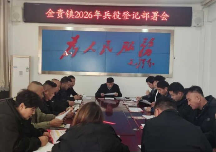 为全面做好2026年度兵役登记、征兵工作,2026年1月5日,金贵镇组织召开了2026年度兵役登记、征兵工作部署会,镇党委书记(武装部政治教导员)、武装部部长、专干、各村民兵连长参加会议。会上就2025年征兵工作完成情况进行了系统总结,动员部署了2026年度兵役登记暨上半年征兵工作。