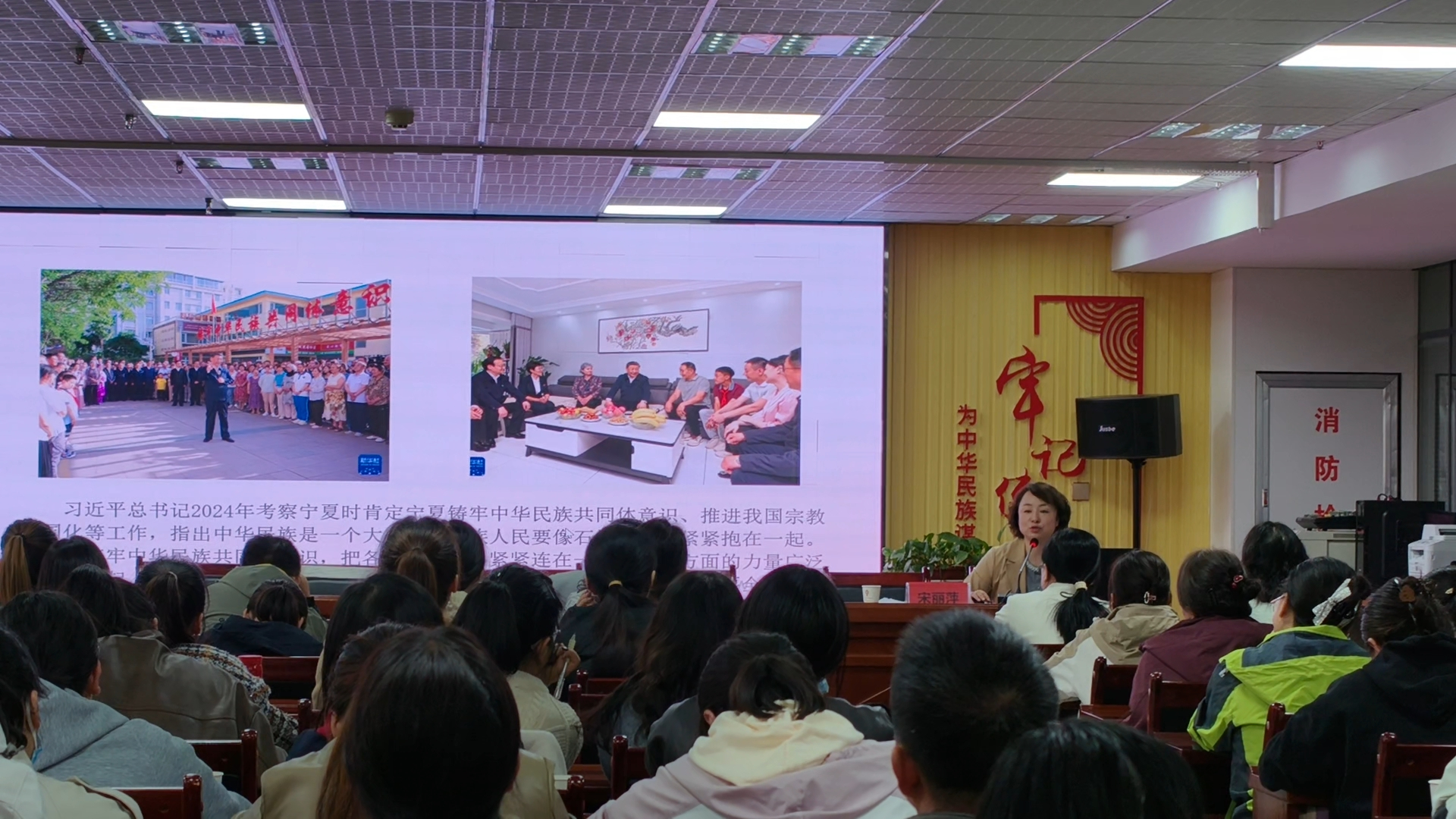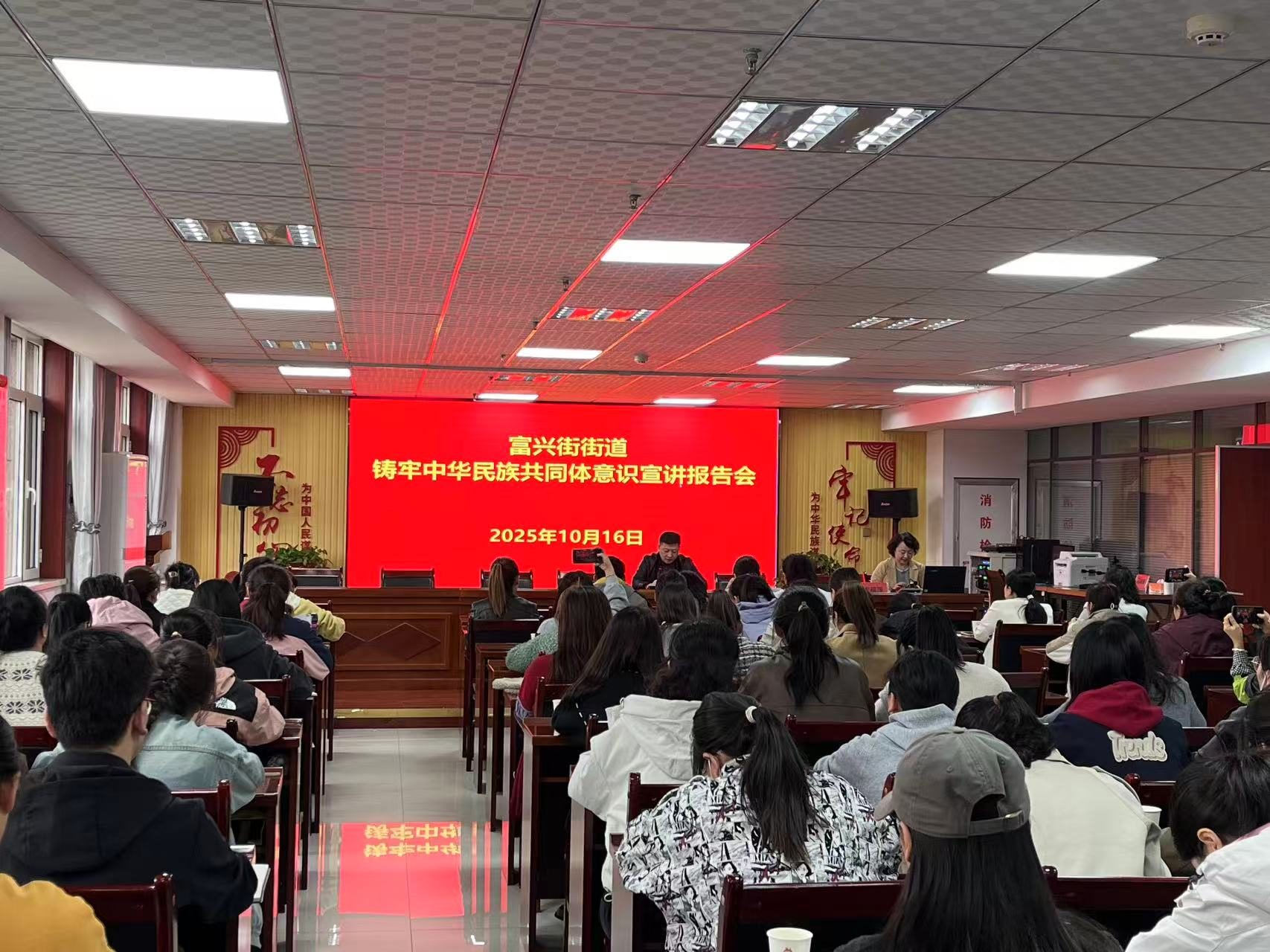 为深入学习贯彻习近平总书记关于加强和改进民族工作的重要思想及关于铸牢中华民族共同体意识的重要论述,10月16日下午,富兴街街道邀请自治区党委讲师团副团长宋丽萍开展铸牢中华民族共同体意识主题宣讲,街道全体干部、各社区“两委”班子成员共计90人参加。