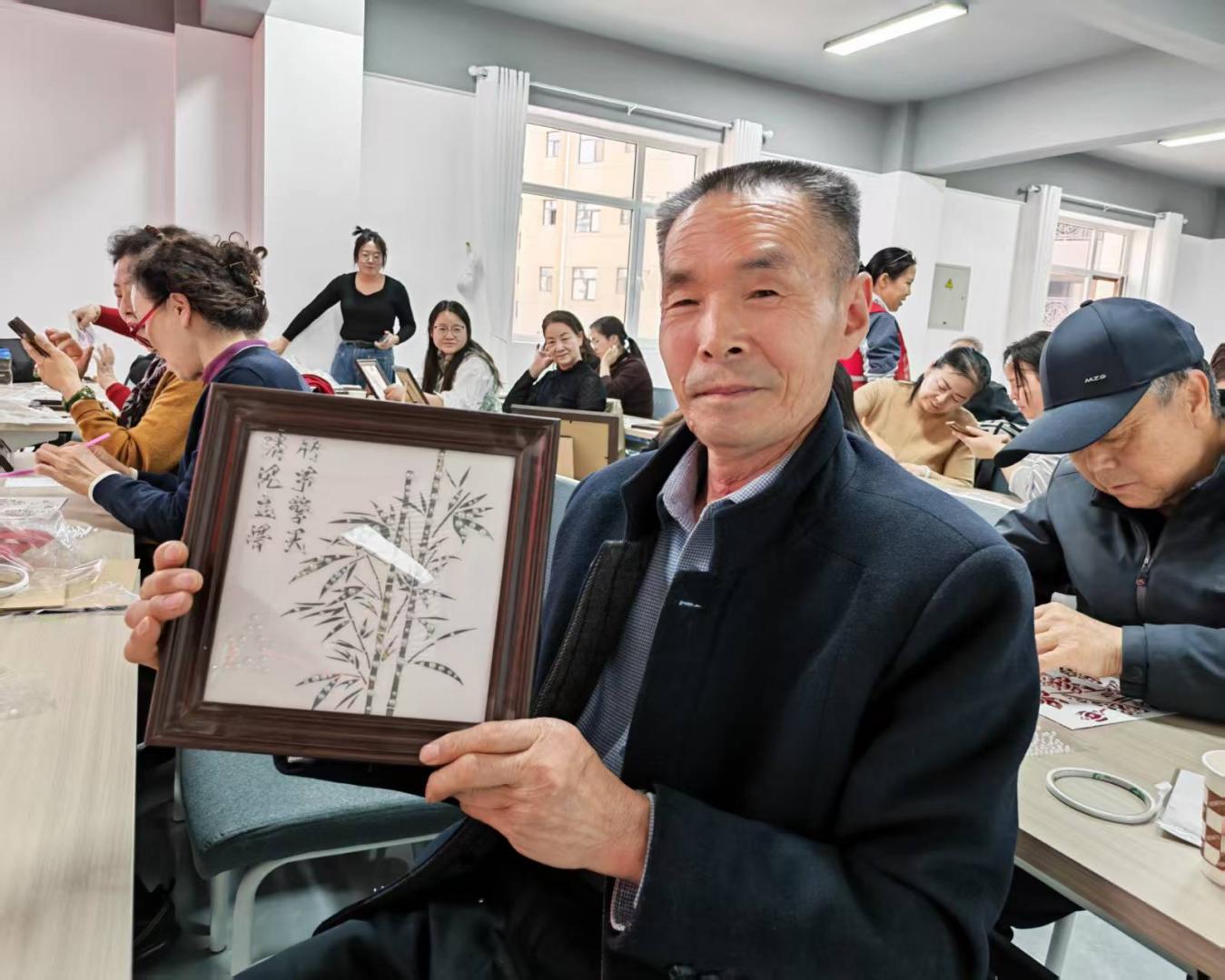 一边是街道社区组织党员群众走进文创基地,品鉴陶瓷、剪纸、葫芦烙画等“廉”主题非遗作品。另一边,依托各社区阵地,多肉植廉、非遗廉洁DIY、廉洁文化集市轮番登场——葫芦刻画、廉洁漆扇、拓印、宋锦珍珠画、手绘风筝……十几种非遗体验项目覆盖老中青幼各年龄段。