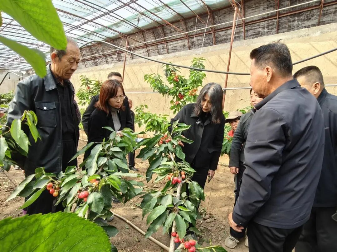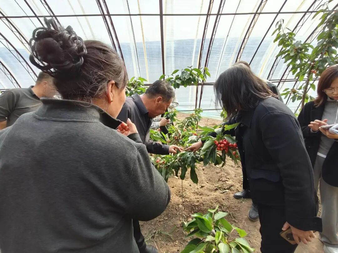 理论培训结束后,张琪静教授与种植户一同走进新平村樱桃种植大棚,开展现场技术指导。在樱桃树行间,专家实地查看植株长势,面对面解答农户在生产中遇到的各类疑问,把技术要点直接落到田间地头。农户们积极提问、交流经验,切实解决了一批长期困扰生产的实际问题,学习氛围浓厚。