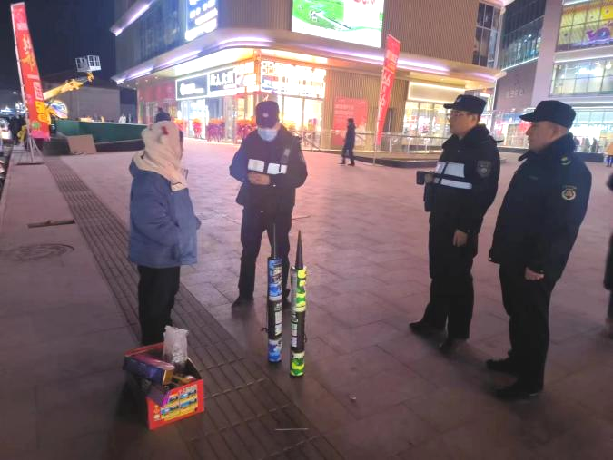 三是重点突出强治理。进一步提高思想认识,坚决克服节假日麻痹思想,明确年宵期间是烟花爆竹销售燃放的高峰期,也是安全事故的高发期。秉承“全覆盖、严执法、重实效、零容忍”的原则,扎实开展“烟花爆竹燃放安全管理攻坚行动”,通过“正常+机动”班次无缝对接,进一步加大巡查整治力度,严厉打击烟花爆竹非法违规经营,强化联勤协作,形成打非治违合力,积极配合县安委办、公安等部门查处非法储存、经营、燃放烟花爆竹行为。重点检查辖区内烟花爆竹经营点证照是否齐全、是否存在违法违规或占道经营烟花爆竹的行为,严禁销售含药量超标、无固定燃放轨迹的“加特林”烟花、专业燃放类礼花弹等不合格或危险性大的产品,提醒烟花爆竹经营商户持证经营,强调安全合规经营,确保烟花爆竹安全舱、消防应急设备、安全警示标志设置规范。截至目前,开展联合执法14次,出动执法人员110余人次,清理占道销售烟花爆竹2处,劝阻违规燃放3起,清理占道销售烟花爆竹 1处,劝阻违规燃放3起,向公安移交线索3条。