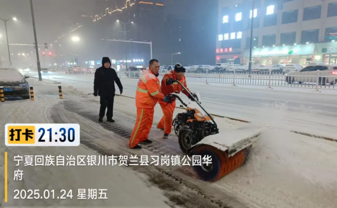 1月24日,贺兰县迎来降雪天气。县气象灾害防御指挥部于1月24日23时启动气象灾害(暴雪、道路结冰)Ⅲ级应急响应。贺兰县综合执法局以雪为令,除雪保畅,用心用力护航群众安全出行。