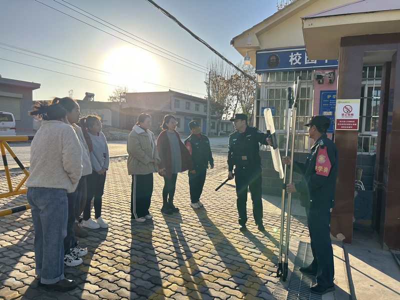 为确保演练活动顺利进行,演练前,民警段佳智提前与学校老师沟通商量演练方案和演练过程中具体细节,提前熟悉流程,了解反恐防暴知识,掌握在危险来临时自我防护和逃生的方法。民警段佳智首先对防暴盾牌、警用钢叉、警棍、催泪喷射器等常用警务防御器材正确的使用方法进行现场示范。讲解了利用警务防御器材制服坏人的技能、要点和注意事项,结合案例对防暴恐相关知识进行讲解,强调当前校园防暴恐工作形势及掌握有关知识技能的必要性。