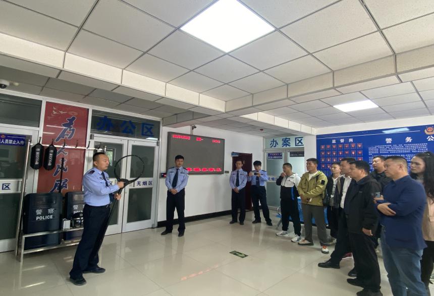 在派出所一楼,所长为大家进行了精彩的警用器械讲解。各类先进的警用装备整齐排列,详细介绍了每一种器械的用途和使用方法。民警让大家直观的感受了无人机“警务”飞行表演,无人机在空中灵活穿梭、变换队形,展示出高超的操控技术和强大的应用潜力,引得“贵宾”们阵阵惊叹,让他们对警用装备有了更直观的认识。
