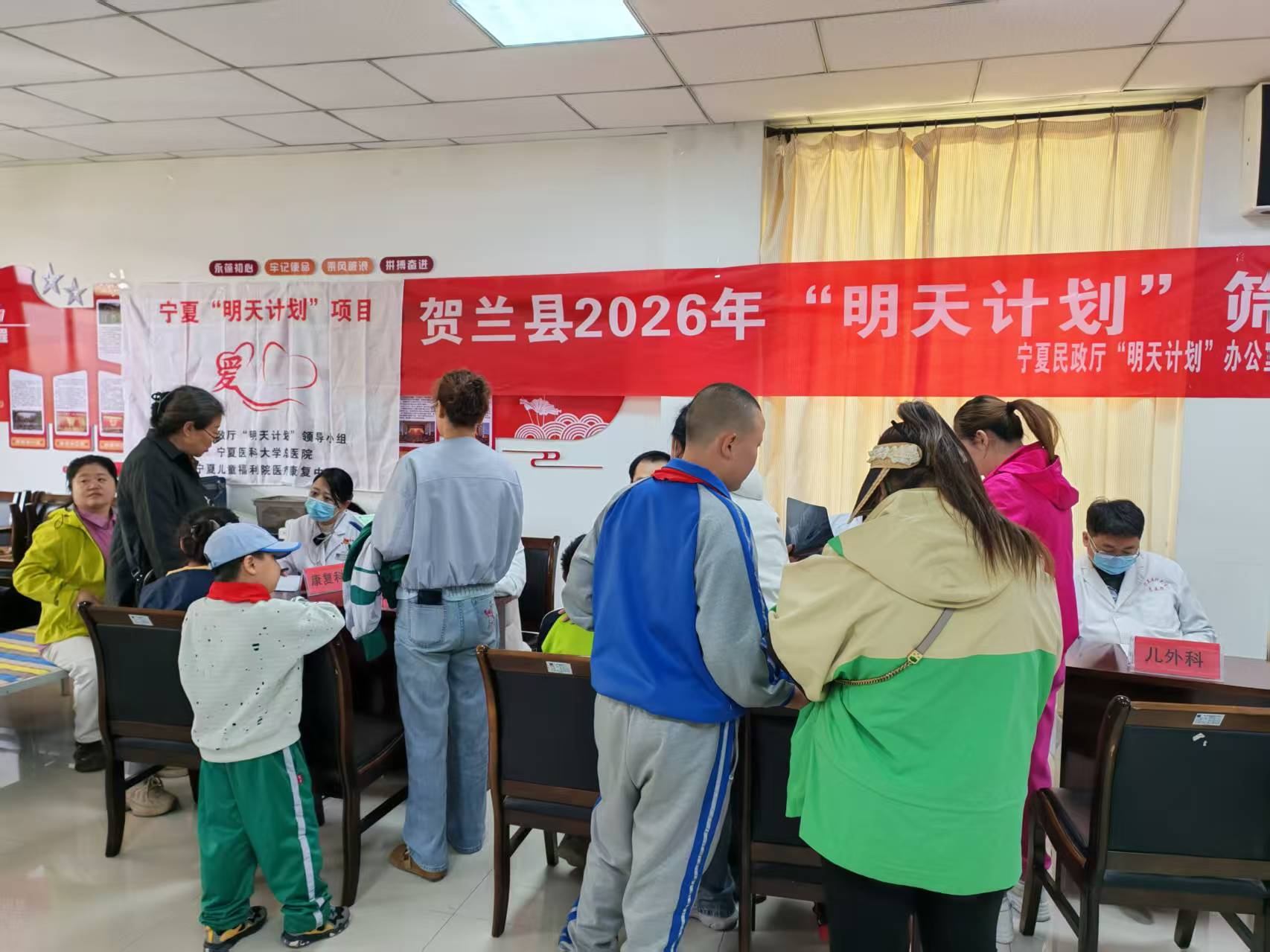 工作开展过程中,县民政局联合民政厅“明天计划”领导小组、宁夏医科大学总院及宁夏儿童福利院医疗康复中心,组建专项筛查小组,筛查内容涵盖内科、外科、生长发育评估、康复需求评估等多项内容,医护人员细致开展各项检查,精准记录儿童健康数据,对筛查中发现的疾病隐患、康复需求逐一登记、分类研判。民政局工作人员全程陪同,耐心解答监护人关于医疗救助、康复服务、政策申领等方面的疑问,同步开展政策宣传,让困境儿童家庭全面了解惠民保障举措。
