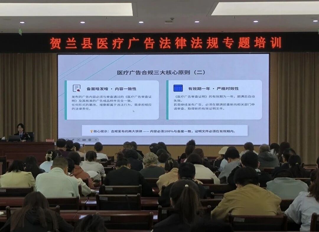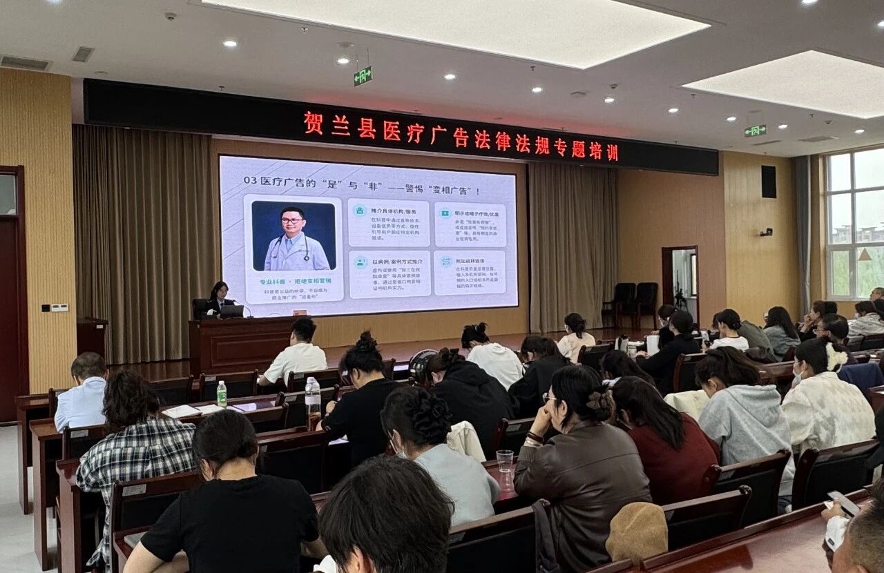 为进一步规范医疗广告市场秩序,压实医疗机构主体责任,有效防范违法广告、违规营销行为发生,近期,贺兰县市场监督管理局面向辖区医疗机构,开展医疗广告合规与监管要点专题培训。培训围绕最新法规、行为边界、内容禁区、典型案例、实操建议五大核心,全面厘清医疗广告发布规则,为辖区医疗机构提供专业、精准、实用的广告合规指引,全力护航医疗行业健康有序发展。