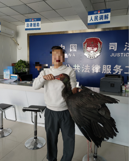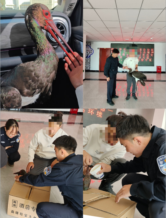 “所长,你帮我看一下这只大鸟是不是国家保护的珍稀鸟类,我该怎么处理?”2023年10月26日中午,社区矫正对象李某气喘吁吁地抱着一只长相怪异的长嘴黑白色大鸟闯入贺兰县常信司法所。司法所工作人员一边安抚李某,一边仔细打量这只怪鸟。李某称,自己路过贺兰县暖泉农场三斗渠边时,发现一只长相怪异的长嘴黑白色大鸟在胡乱扑腾,腿部被铁夹夹破无法站立,他将铁夹取下后发现大鸟腿部有严重伤口,一只腿似被夹断无法正常行走。他通过手机搜索发现,这可能是国家一级保护动物黑鹳雀。他想起司法所开展集中教育时曾说过:非法猎捕、杀害国家重点保护的珍贵、濒危野生动物的,或者非法收购、运输、出售国家重点保护的珍贵、濒危野生动物及其制品的,处五年以下有期徒刑或者拘役,并处罚金;情节严重的,处五年以上十年以下有期徒刑,并处罚金;情节特别严重的,处十年以上有期徒刑,并处罚金或者没收财产。他一时不知道如何处理这只珍稀大鸟。司法所工作人员立即陪同李某前往常信派出所报案。派出所将上交的动物移送至贺兰县自然资源保护局鉴定并救治,贺兰县自然资源保护局请专家鉴定后确认这是一只黑鹳雀,属国家一级保护动物,被列入《中国重点保护野生动物名录》。