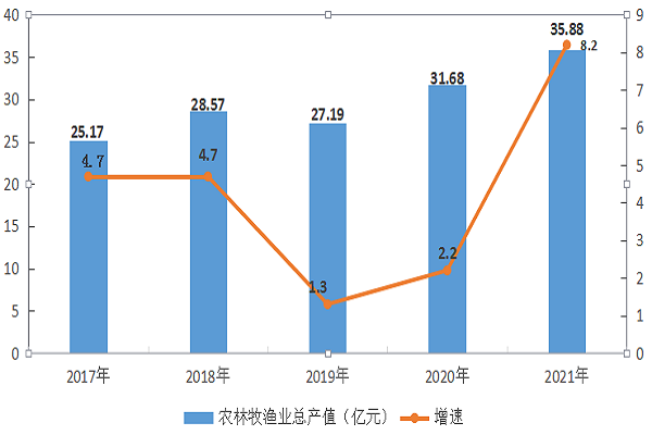 农林牧渔业总产值 | 35.88 | 8.2 | — | — | 31.68 | 2.2 | — | — |