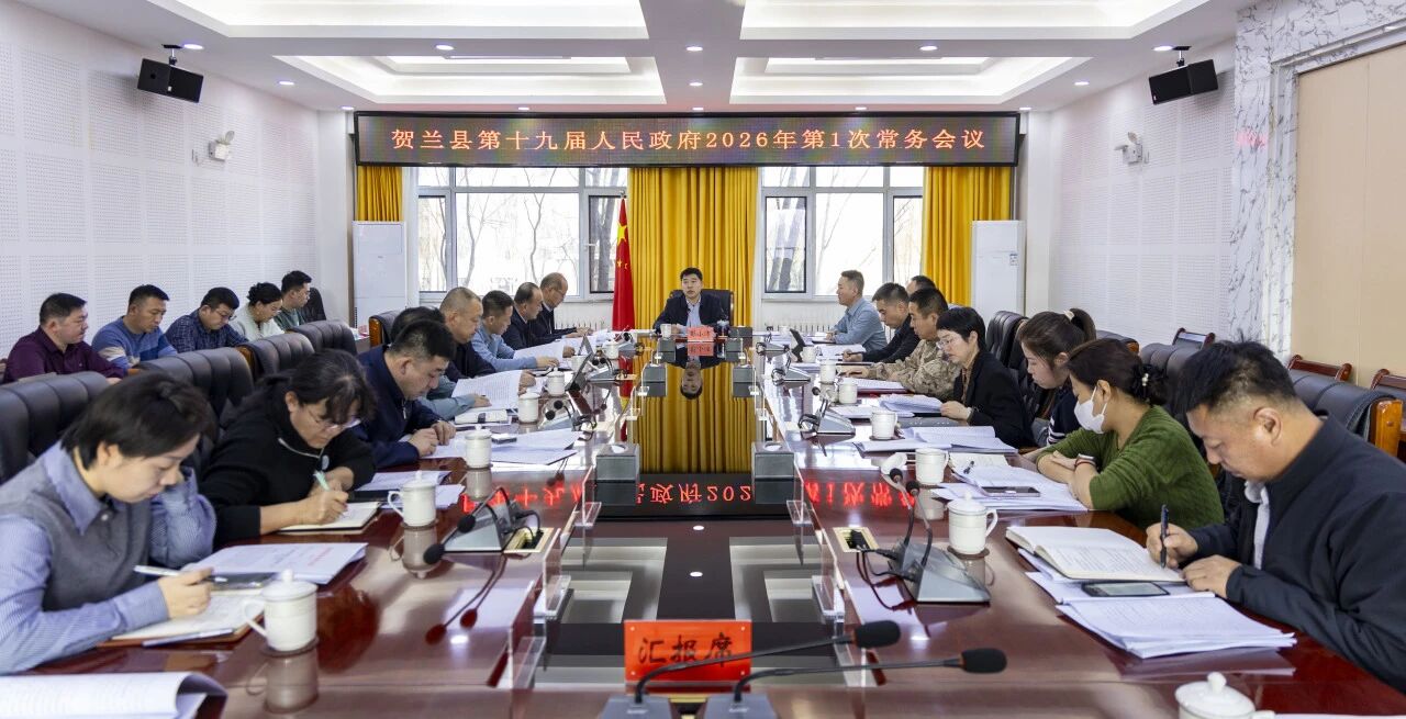 1月5日,县委副书记、县长彭小沛主持召开贺兰县第十九届人民政府2026年第1次常务会议,传达学习习近平总书记在全国政协新年茶话会上的讲话、二〇二六年新年贺词、致信祝贺解放军报创刊70周年、致信祝贺科技日报创刊40周年、在《求是》杂志发表的重要文章《学习好贯彻好党的二十届四中全会精神》精神,审议《贺兰县人民政府工作报告(送审稿)》《贺兰县国民经济和社会发展第十四个五年规划纲要完成情况的报告和贺兰县国民经济和社会发展第十五个五年规划纲要(送审稿)》等,研究部署近期重点工作。