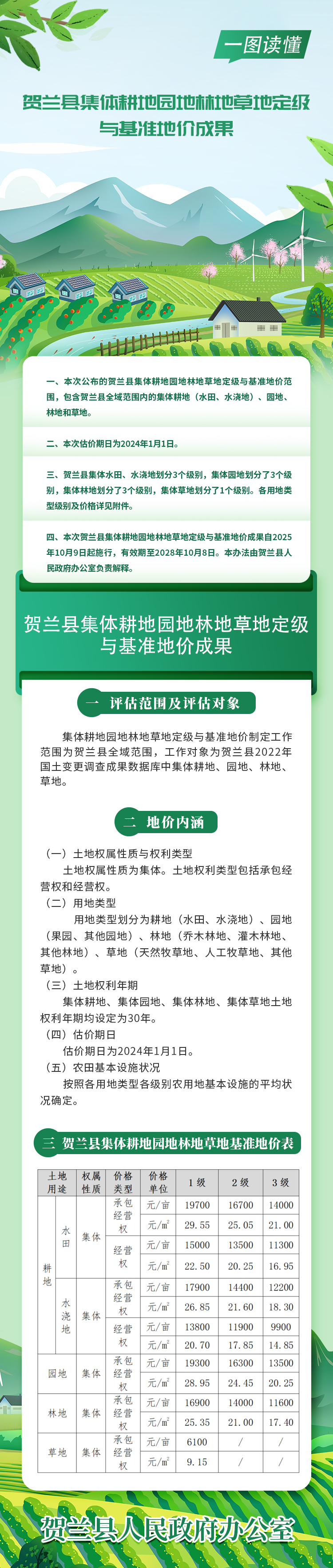 一图读懂《贺兰县集体耕地园地林地草地定级与基准地价成果》